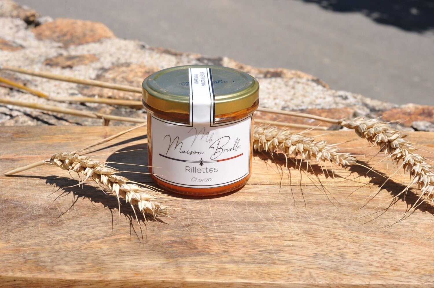 Rillettes de porc breton, assaisonnées simplement, saveur authentique et fondante.